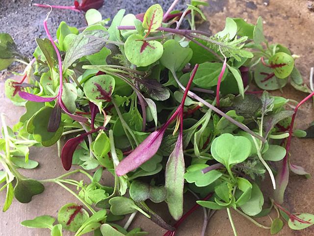 タカナ、ミズナ、アマランサス、レッドロシアン、レッドチョイ、レッドマスタードミズナ、ルッコラ、レッドデトロイト、デトロイト、マスタードグリーン、レッドオゼイユ、ラディッシュ